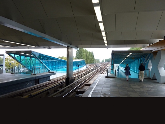 De zelfstandigheid van de corridor als object is in het nieuwe ontwerp versterkt. Van de overgang van parkeergarage naar de perrons is een interessante ruimtelijk transformatie gemaakt. Door het dak plaatselijk te verhogen ontstaan langere zichtlijnen die de sociale veiligheid vergroten.