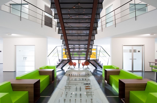 In 2004 werd het complex naar achteren toe verdubbeld om een grotere productieruimte te bekomen en er werden bovenaan op een mooie wijze kantoren in verwerkt met een uitstekend volume afgewerkt met grote glaspartijen.