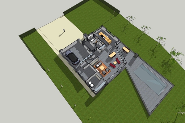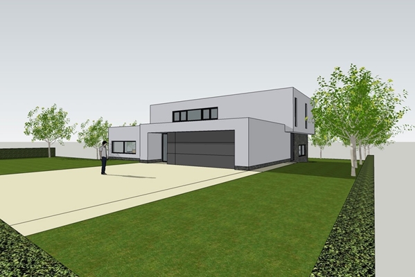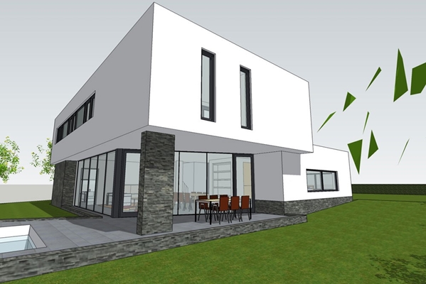 Dit huis wordt gebouwd in de bestaande wijk "de Kollenberg"in Sittard. Deze wijk heeft een bungalow-achtige setting meegekregen in de 70-er jaren. Dit moderne huis richt zich op de zonnige kant van het perceel. Daar is ook het overdekt terras en het zwembad gesitueerd. Het overdekte terras ontstaat door de bovenverdieping hier overheen te laten kragen. Het huis heeft op de begane grond een niveauverschil. Het programma wordt hierdoor logisch van opzet en krijgt zo zijn eigen karakter mee.