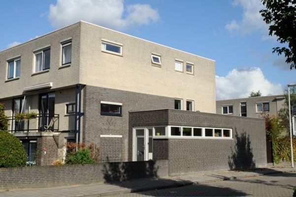 De bestaande split-level woning is ruimtelijk interessant maar de verschillende functies misten het gewenste onderling contact; de keuken was gesitueerd op de tussenverdieping en had weinig contact met de hoge woonkamer en de omringende tuin. Door de keuken en eetruimte in de nieuwe aanbouw te plaatsen, vormen ze samen met de woonkamer het hart van de woning, omringd door de voor- en achtertuin. De langsgevel van de nieuwe aanbouw sluit met de donkere baksteen aan op de bestaande tuinmuur, het strookraam benadrukt het horizontale karakter van de aanbouw en biedt voldoende zicht èn privacy aan de bewoners vanaf de straat.