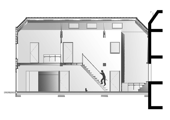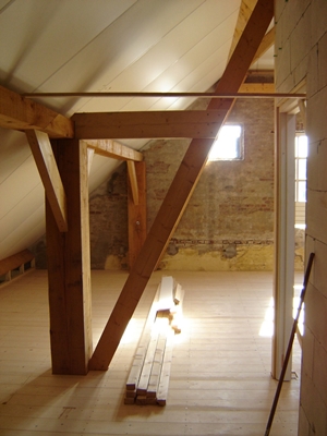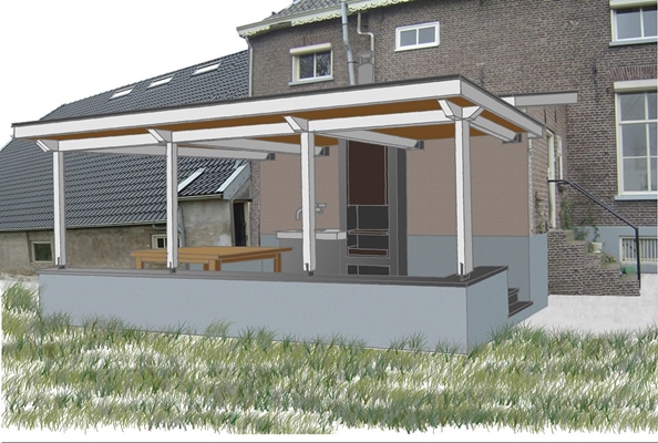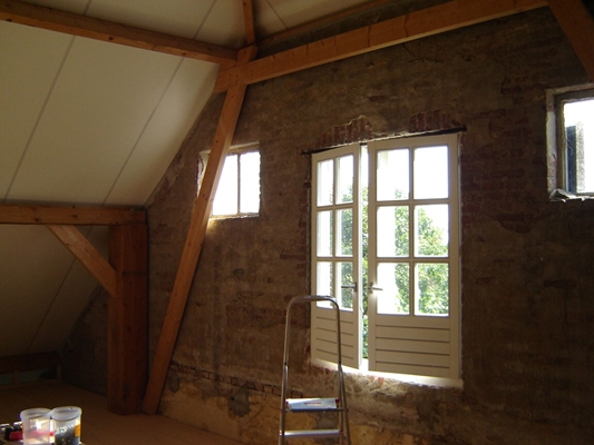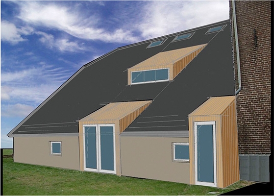 Een oude schuur is volledig gerenoveerd en omgevormd tot een kleine B&B met drie verblijfsvertrekken op de verdieping. De schuur ligt aan een populaire fietsroute in de Betuwe en is voor fietsers een interessante overnachtingsplek. De schuur wordt ontsloten door middel van een grote centrale hal met vide en kan los functioneren van het aangrenzende woonhuis. Op de begane grond, grenzend aan de tuin, ligt een grote multifunctionele ruimte geschikt voor het houden van workshops. Een oude garage grenzend aan de schuur is omgevormd tot een veranda.