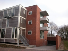 Het appartementencomplex is gelegen op het terrein van de voormalige Adolf van Nassau kazerne te Zuidlaren. Middels zeven “vizieren” is dit terrein verdeeld in zes plangebieden waarvan ‘De Brinkhof’ er een is. Zoals de naam aangeeft, is de bebouwing, merendeels vrijstaande en geschakelde woningen, gesitueerd rondom een binnenterrein of hof. Het appartementencomplex vormt hier de afsluiting van. Het drie bouwlagen tellende complex omvat 21 koop- en 9 huurappartementen. In de half verdiepte onderbouw bevinden zich de parkeerplaatsen van de appartementen. Door het volume in twee delen te knippen is een visuele verbinding gelegd tussen het binnenterrein en het omliggende Drentse landschap. De ruimte tussen beide volumes is daartoe transparant ingevuld. De hier gesitueerde hoofdentree, met lift, trappen en loopbruggen, ontsluit en verbindt de appartementen in de twee delen. Een aan de hofzijde gelegen, ruim opgezette binnenstraat zorgt voor een sociaal veilige ontsluiting van de koopappartementen. De toegepaste materialen (rode baksteen, onbehandeld Red Cedar en wit geschilderde houten kozijnen) benadrukken de markante vormgeving zonder te detoneren met de omgeving.
