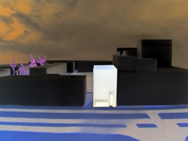 Het onderhavige kantoorgebouw ligt in het door WEST 8 opgestelde stedenbouwkundig plan voor de Zilverparkkade in Lelystad. In tegenstelling tot de huidige structuur van Lelystad, voorziet het stedenbouwkundig plan in een markering van individuele panden door schakeling van solitaire gevels. De relatief kleine omvang van het kantoorgebouw (850 m2 BVO) en de situering op een zichthoek vroegen om een bijzonder benadering van de ontwerpopgave. Hierbij speelde het begrip schaal een belangrijke rol. Het uit 4 bouwlagen bestaande volume is geheel uit een materiaal opgetrokken. Zowel de kozijnen als de dichte gevelvlakken worden uitgevoerd in blank aluminium. Mede door een verfijnde detaillering verkrijgt de robuuste compositie zo een blinkende en (hopelijk) oogverblindende uitstraling.