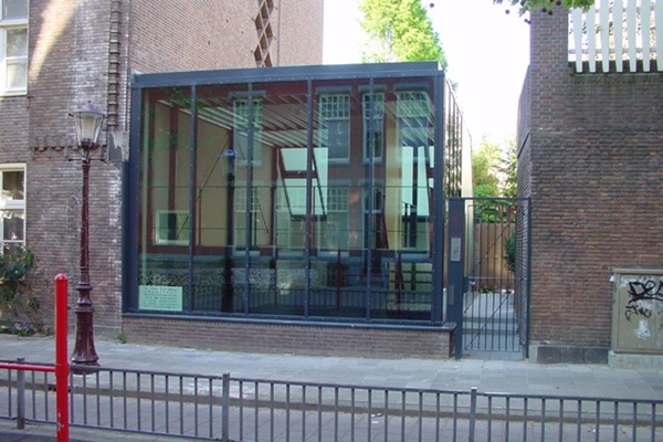 Hoewel het gaat om een project van bescheiden omvang speelde hierdoor tijdens het ontwerpproces de relatie met de omgeving een belangrijke rol. De architectuur van Van der Mey kenmerkt zich hier door een verfijnde plastische opbouw en een bijzonder sculpturale hoek. Het nieuwe volume trekt zich hier op het eerste gezicht niets van aan en presenteert zich als een vervreemdend object in een contrasterend materiaal. Het zijn echter de smalle plint van metselwerk en het iets terug leggen van het glasvlak die de nieuwe invulling op subtiele wijze in de omgeving verankeren.