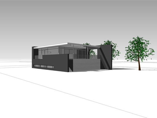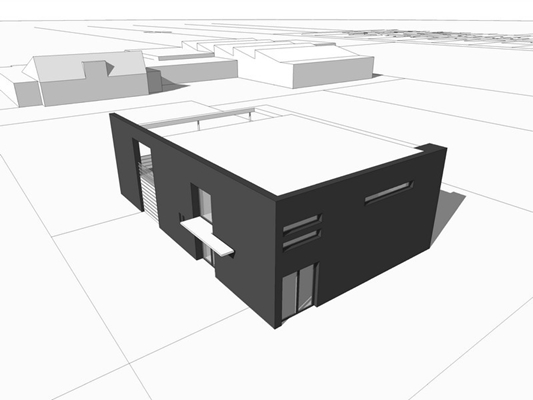 Een ontwerp voor een bedrijfswoning bij een paardenpension, aan de bosrand net buiten een woonwijk. De woning heeft een open en een gesloten kant. De gesloten kant ligt aan de straat- en boszijde voor privacy in de woning en minimalisering van lichtuitstraling richting bos. Aan de andere zijde opent de woning zich naar de stallen en weide voor de paarden. Door het gedeeltelijk verzinken van de slaapvertrekken in het maaiveld onstaat er ruimte voor extra hoogte in de daarbovengelegen woonkamer en keuken. Door de woonfuncties op de eerste verdieping te positioneren bieden ze meer privacy en vrij uitzicht over de weide.