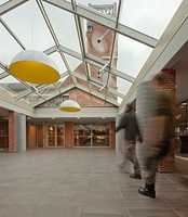 In het ontwerp worden de bestaande ingesloten buitenruimten functioneel betrokken bij het plangebied door deze te overkappen met een glazen dak. De publieksbalie wordt centraal gepositioneerd onder het van boven invallende licht. De transparante scheidingswanden creëren een overzichtelijke, duidelijke ruimte die het gevoel van veiligheid versterkt. Door een seperate ingang te maken voor de theaterruimte ‘De Dialoog’ onstaat een overzichtelijke scheiding met de publieksbalie die duidelijkheid geeft aan bezoekers en baliemedewerkers. De tussen deze functies ingeplaatste foyer kan door beiden gebruikt worden. De backoffice heeft een directe relatie met de balie. Deze is wel afgeschermd maar niet op afstand.