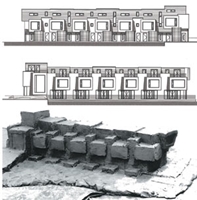 35 woningen zijn verdeeld over vijf in het water stekende landtongen. Hierdoor wordt optimaal gebruik gemaakt van de situering aan het water, maar wordt tegelijk het doorzicht vanaf de wal over het water zo weinig mogelijk belemmerd. De landtongen kennen twee zijden, een entreezijde en een terraszijde. De entrees worden in het riet gelegd, zodat de terrassen die aan de overkant liggen meer privacy krijgen. De massa van de woning is zo gekneed dat er goed uitzicht en doorzicht wordt verkregen. Op de verdieping aan de terraszijde zijn de woonruimten als aparte volumes vormgegeven, zodat de individuele woning herkenbaar is. Aan de entreezijde vervullen de bergingen deze rol. De overige volume- en materiaalbehandeling is gericht op het benadrukken van de eenheid van het blok. De woning kent vrij indeelbare plattegronden, op ieder niveau kunnen voor en achter verschillende soorten functies worden gesitueerd. De plek en grootte van de gaten in de massa komen voort uit de relatie die de woning met zijn omgeving aangaat en zouden als opzet kunnen dienen voor een functionele indeling van de woning. In de gevel zijn de verschillende gebruiksmogelijkheden met verschillende materiaalsoorten gevisualiseerd maar zodanig dat de totale massa niet wordt gefragmenteerd.