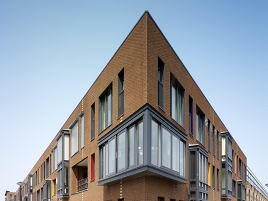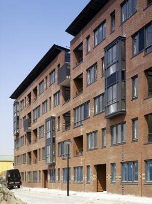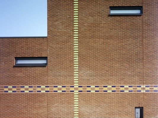 Stad van de Zon is de eerste volledig CO2-emissie neutrale ‘Kyoto’-wijk ter wereld. In een carré van 700m bij 700m 1600 energiezuinige woningen aangelegd. Dit is bereikt door de zonnepanelen (de meeste zijn op de daken geplaatst) en drie windturbines. De wijk omvat een 175 hectare groot recreatie gebied met bos, natuur en water. Een 90 hectare groot bos is bewust aangeplant om CO2 vast te leggen. De supervisor van dit plan was Ashok Bhalotra van stedenbouwkundig bureau KuiperCompagnons. Er waren meerdere architecten bij dit plan betrokken. Ons bureau heeft in deze bijzondere wijk ontwerpen gemaakt voor circa 390 woningen in verschillende categorieën. Voordat we begonnen met het ontwerpen van dit project heeft ons bureau meegedaan aan een door de gemeente georganiseerd pv-atelier. De bedoeling was om creatieve ideeën aan te dragen voor de toepassing van PV op wijkniveau en op woningniveau. Dit was voor ons heel inspirerend en behulpzaam omdat we, vanuit een fris en onbevangen positie de mogelijkheid kregen om ideeën te genereren voor de toepassing van PV. Er zijn heel veel ideeën bedacht; zonnepanelen opgenomen in de gevel, op het dak, horizontaal of verticaal, in het openbare gebied… een aantal ideeën waren op dat moment te ambitieus maar ander ideeën waren wel haalbaar en werden dan ook toegepast. Op 23 september 2009 was de grote opening van deze levensloop- en klimaatbestendige, maar vooral duurzame en naar de toekomst gerichte wijk. In de eerste fase van Stad van de Zon, de eerste CO2-emissie neutrale ‘Kyoto’-wijk ter wereld, hebben we ontwerp gemaakt voor 120 laagbouwwoningen en 51 appartementen. Dit plangebied is gesitueerd in de noordwestelijke hoek van het carré. Voor de ‘Stad van de zon’ geldt als thema de “zon”. Wij hebben ons laten inspireren door weefpatronen van textiel uit zonnige landen, waaronder uit India. Dit heeft geresulteerd in bakstenen gevels opgebouwd uit een veelkleurig palet van stenen. Op sommige plekken zijn op een abstracte manier geglazuurde stenen in felle kleuren ingemetseld die doen denken aan de decoratie van een Indiaas gewaad, de sari. Op andere plekken verandert de kleur van het metselwerk een paar keer van boven naar beneden, of van links naar rechts. Het hier toegepaste weefpatroon wordt dat over de gehele bouwvolume uitgevoerd. Aan de buitenkant van dit plan hebben we zogenoemde “veste” woningen ontworpen die door hun robuustheid en ritme een drielaagse wand creëren langs het water. Elke woning is voorzien van een glazen erker twee verdiepingen hoog. Door deze te laten verspringen in de gevels ontstaat er mogelijkheid voor de bewoners om te kunnen kiezen tussen beneden of boven wonen. In de uiterste hoek van de carré waar de “veste” woningen bij elkaar komen staat het appartementengebouw met 51 koopappartementen erin. Weefpatronen en erkers lopen vloeiend door in de vijf verdiepingen hoge gevels die eindigen in een dakrand van zonnepanelen die als het ware zweeft boven het metselwerk volume. Aan de andere kant van dit plan liggen tweelaagse woningen omarmd door de “veste” woningen. Als derde laag hebben deze woningen een stalen frame met zonnepanelen gekregen. Op deze manier wordt er een aansluiting gezocht met de bouwhoogte van de naast liggende woningen. Eventuele dakopbouwen kunnen dit beeld en het continuïteit van de wand niet verstoren omdat ze achter de frames met zonnepanelen een plek krijgen. Deze “slinger” woningen, hebben hun naam te danken aan het metselwerk die in een vorm van een slinger de verbinding legt met de “veste” woningen en met de woningen op het binnenterrein. De woningen van het binnenterrein verschieten ook van kleur maar nu in horizontale zin. Dit weefpatroon sluit aan op de kleuren van de “slinger” woningen en de “veste” woningen.