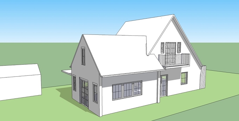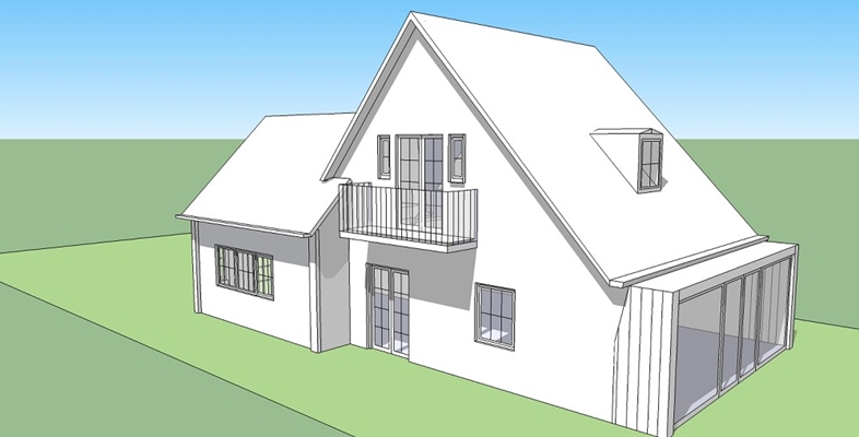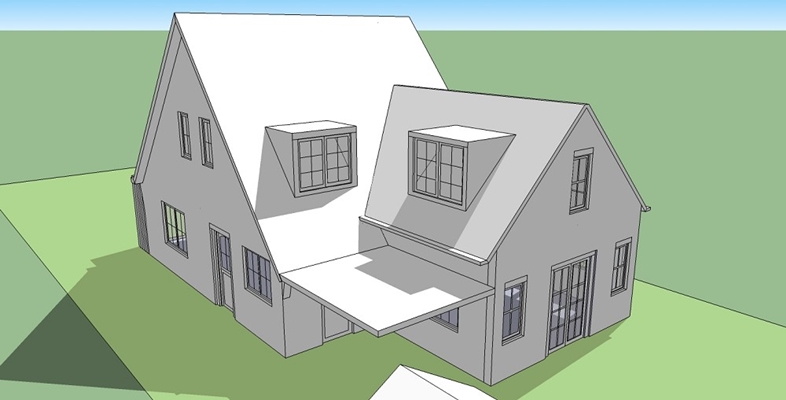 Het ontwerp voorziet in het wijzigen van de functie van de huidige uitbouw (schuur/washok) naar woonkeuken. Tegelijkertijd wordt deze huidige geïsoleerd gelegen ruimte ruimtelijk gekoppeld aan de woonkamer, waar deze nu nog letterlijk een buffer vormt. Hierdoor ontstaat niet alleen een visuele relatie met de woonkeuken maar ook met de achtertuin. De uitbouw staat grotendeels op de footprint van de bestaande maar wordt aan 1 zijde een meter verbreed. Het optillen van de kap met een kleine 1,5m maakt het creeëren van een slaapkamer erboven mogelijk.