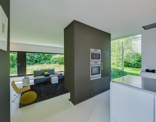 Binnen de prettig strenge randvoorwaarden van het beeldkwaliteitsplan van architectuurstudio Hertzberger voor de bouw van vrijstaande woningen op deze boomrijke locatie in de Vinexwijk Meerhoven, is een eenvoudig bouwvolume ontworpen dat geheel in hout gerealiseerd zal gaan worden. De architectuur laat zich kenschetsen als een scherp gesneden verticaal geprofileerd geheel waarbij de op zich banale eis van twee parkeerplaatsen op het kavel geïntegreerd kon worden. Hierdoor wordt een deel van het kavel semi-publiek en toont zich open terwijl er een maximale privacy voor de bewoners is.
