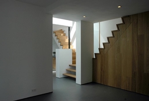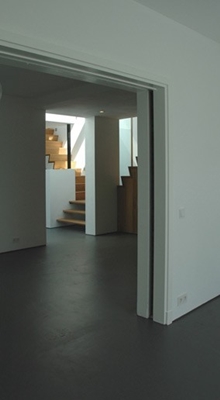 Hierbij gaat het om een ruimtelijkheid die vanuit binnenuit is bedacht en het bestaande en het nieuwe met elkaar verbindt. De materialisatie en kleurstelling is zo opgezet dat deze continuïteit voelbaar is in het interieur d.m.v verschillende zichtlijnen , openingen, verbindingen en de behandeling van oppervlakten, De trappen en ingebouwde kasten zijn in dezelfde afwerking als de verbindingstrappen in het snijvlak van het bestaande woonhuis en de nieuwe uitbreiding .