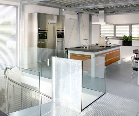 Het huis in ontstaan door een lichtgewicht staal constructie te plaatsen op een eenvoudige kantoorbungalow. Lichtgewicht betekent hier letterlijk lichtgewicht en tot de laatste kilo, daar de bestaande fundering nauwelijks extra gewicht kon opvangen. Om gewicht te sparen en om het uitzicht te benutten is de open living op de verdieping gesitueerd en bevinden de slaapkamers, hal en berging zich op de begane grond.