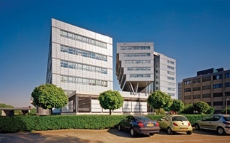 Het in beton opgetrokken casco wordt omsloten door een aluminium prefab gevel. De kleur hiervan (metallic lichtblauw) intensiveert zich naar boven toe waardoor de architectonische vorm versterkt wordt. In de gevel zijn, per stramien van 1800 mm, openende delen opgenomen die bedoeld zijn voor het persoonlijk beïnvloeden van het binnenklimaat. De voor parkeren bedoelde onderbouw is bekleed met, de toegang verhinderende, open roosters afgewisseld met transparante glasplaten.