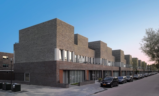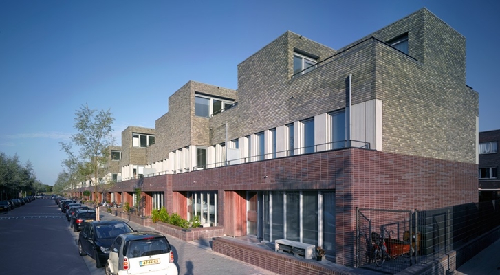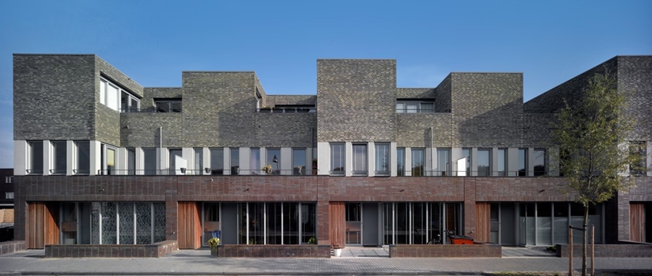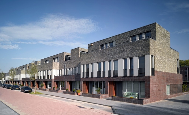 Door een geraffineerde schakeling van de 5 woningtypen heeft het project een levendig gevelbeeld met veel plastiek en variatie.