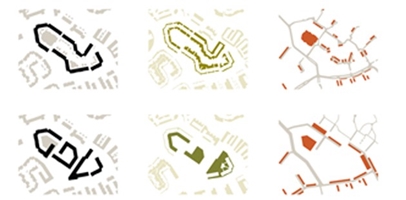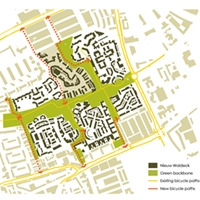 De kwaliteiten van de ‘bloemkoolstructuur’ moeten worden versterkt. Een duidelijker netwerk van fietsroutes ligt ten grondslag aan de ruimtelijke structuur. Als het huizenblok wordt opengebroken, kan van het binnengebied het groene hart (de ‘brink’) van de buurt worden gemaakt. Tussen de openbare en de private ruimte ontstaat een beter evenwicht met duidelijker grenzen. Bovendien wordt het contrast tussen de verharde openbare ruimte en de parkstructuur benadrukt. Om ouder wordende bewoners in
