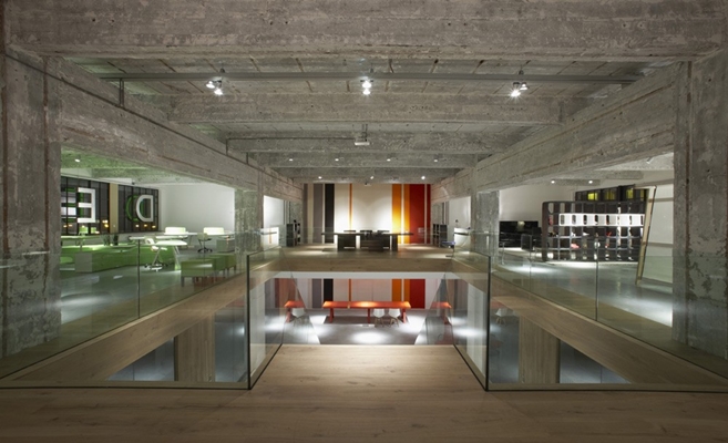Echter iedere locatie is uniek en ook de wensen van DESQUE zijn uniek; juist deze onderscheidende kenmerken hebben we doen versterken. De keuze voor een heldere structuur, belijning en duurzame materialisatie van het interieur zorgt dat het een vanzelfsprekend geheel vormt met de industriële omgeving. De betonstructuur is het belangrijkste bestanddeel, deze is tot op het beton kaal gemaakt. Een bijzondere entree, een vide met de sculpturale trap die naadloos overgaat in een verhoging in de ruimte voor ontmoeting, overleg, oriëntatie en ontspanning staat centraal. Vanaf deze plek heeft men een prachtig overzicht over de inrichtingsproducten die DESQUE voert in haar programma, alles eromheen is als onaangetast en recessief zodat juist deze design producten alle aandacht krijgen