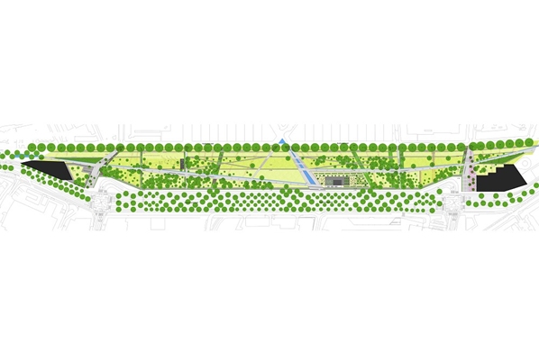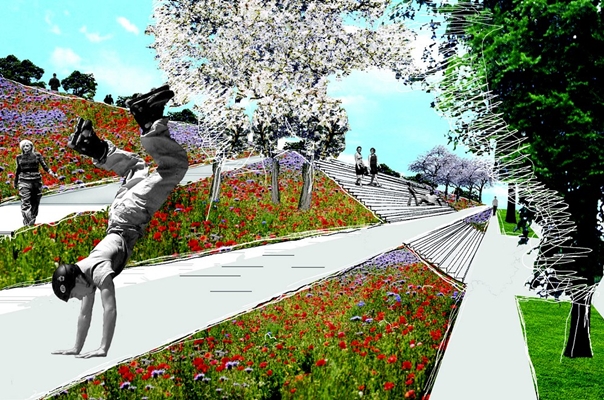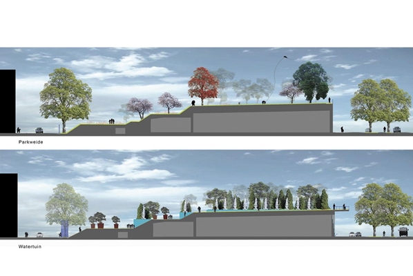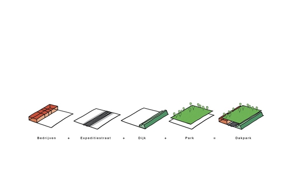 Het dakpark is een goed voorbeeld van intensief ruimtegebruik en dubbel grondgebruik. De specifieke opgave is om, ondanks de beperkingen (hoge ligging op een gebouwencomplex, klimatologische en bouwkundige omstandigheden, restricties van o.a. NS, Havenbedrijf en Hoogheemraadschap) een goed bereikbaar en écht groen park te maken. Het dakpark wordt gekenmerkt door een veelheid aan richtingen; een complex ruimtelijk beeld veroorzaakt door knikken, plooien, taluds en een stelsel van zigzaggende paden.