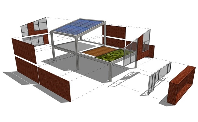 De woningen bestaan uit 2 modules die achter elkaar op het kavel zijn geplaatst, waarvan de achterste in het midden van het kavel, met de mogelijkheid van een uitbreiding van een 3e module hier bovenop. Op deze manier kunnen starterswoningen van 2 modules (ca. 100 m2) worden uitgebreid naar een gezinswoning van 3 modules (ca. 150 m2). Om de woning nóg flexibeler en dus levensloopbestendiger te maken, heeft 8A een duidelijk zichtbaar constructieraster van schoon beton geïntroduceerd waarbinnen de bewoners hun eigen individuele gevelinvulling kunnen krijgen. Doordat de invullingen niet dragend zijn, kunnen ze ook makkelijk en goedkoop worden aangepast aan de veranderingen van de woningindeling of levensfase van de bewoners. Bewoners kunnen hun woning verder 'customisen' door het toevoegen van één van de te kiezen opbouwmodules met verschillende dakvormen. De woningen komen hierdoor los van elkaar en ogen als vrijstaande huizen.