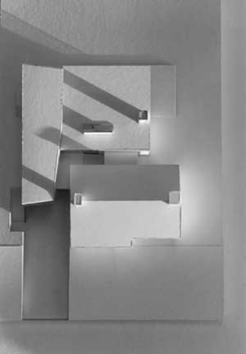 Gaandeweg het ontwerpproces tekende zich de mogelijkheid af om in zowel programma van eisen als in architectuur te komen tot een synthese van bestaand en nieuw. In positionering en vorm van de nieuwbouw is gezocht naar een evenwicht tussen aanwezigheid en terughoudendheid. De uitbreiding onderscheidt globaal twee volumes. Aan de noordzijde het naar binnen gerichte blok met garage, slaapkamer en badkamer; aan de zuidzijde de -onder het flauw hellende dak- naar buiten gerichte woonkamer. Tussen beide functies het verhoogde eetkamerplateau met uitzicht op zowel de straat als de tuin. De huidige entree zal als formele ingang worden gehandhaafd.De woon-eetkamer bestaat uit een op zijn kant gelegde open U-vorm, georiënteerd op de achterliggende tuin.