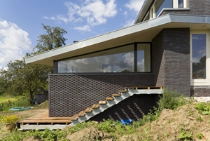 Het huis voegt zich subtiel in het straatbeeld terwijl ze naar achter toe steeds opener en abstracter wordt. Dit principe wordt doorgezet in de materialisering en de detaillering. In eerste instantie vertrouwd en toch vervreemdend aan het llint en abstract en modern aan de achterzijde. De woning vormt zo een moderne interpretatie van een traditionele dijkwoning