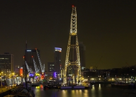 Het Havenmuseum aan de Leuvehaven toont het beeld van de Rotterdamse haven in het hart van de stad. De hijskranen, schepen, de grote bok, graanelevator en andere havenelementen zijn op een dramatische wijze uitgelicht en vormen een mooi contrast met de strakke moderne architectuur op de achtergrond.