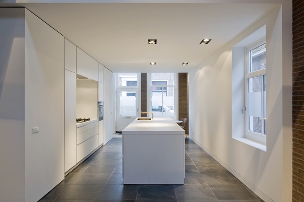 De volumes staan los van elkaar en los van de kopgevels hierdoor ontstaan doorzichten en vides. De originele authentieke schil van het huis is op sommige plekken (gedeeltelijk) zichtbaar gelaten waardoor een spannend spel tussen oud en nieuw ontstaat.