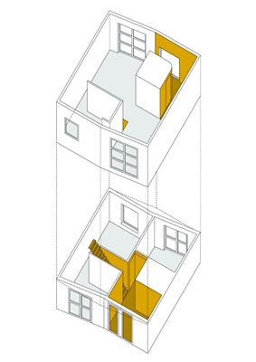 Het project betreft het ontwerp voor een woning gelegen in het westelijk deel van het binnenstedelijke plangebied Nieuw Leyden (fase III), een gebied waar particuliere opdrachtgevers hun eigen huis kunnen ontwikkelen. De woning maakt deel uit van een ensemble van in totaal 9 woningen die in de vorm van een hoefijzer rondom een gemeenschappelijke tuin zijn gegroepeerd.