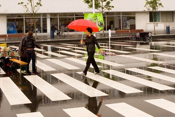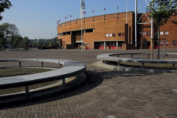 Het stedelijk veld wordt nog versterkt door het kader van bomen. Binnen het kader staan verspreid geplaatste bomen met banken waardoor een prettig verblijfsklimaat ontstaat. Het voorplein fungeert als brede loper naar de entree. Het royale karakter van het ontwerp doet recht aan het monumentaliteit van het Olympisch Stadion en geeft het stadion weer een gezicht naar de stad.