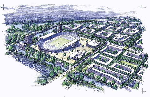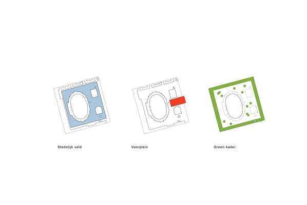 Het Olympisch Stadion-terrein is opgevat als een stedelijk veld: een flexibele ruimte geschikt voor grootstedelijke evenementen maar ook voor dagelijks gebruik. Het ‘stedelijk veld’ wordt manifest gemaakt door een verstedelijking van de randen: bebouwen van het huidige Stadionplein aan de oostzijde, het Olympisch kwartier aan de noordzijde en losse bebouwing aan de randen van het stedelijk veld. Het Olympisch stadion en de Citroëngebouwen staan los op het stedelijk veld.