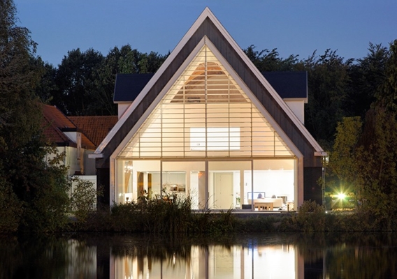 De oever van de rivier de Rotte is een markante gevel rijker. Het gaat om een gerenoveerde kerk uit de jaren dertig van de vorige eeuw. Na tientallen jaren te zijn doorgegaan voor garage en loods, vormt de kerk nu een bijzonder thuis voor een gezin met twee jonge kinderen. Architectenbureau Ruud Visser ontwierp in samenwerking met Peter Boer een ‘huis in een kerk’.