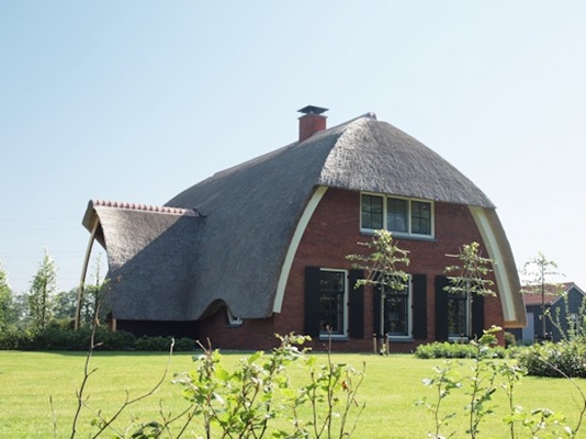 De rieten kap van de woning vertoond in silhouet veel gelijkenissen met de vele boerderij-woningen in het buitengebied van Nijkerk. De detailering van de raamkozijnen, wolfseinden en overstekken zorgen dat voor het traditionele uiterlijk van de woning.