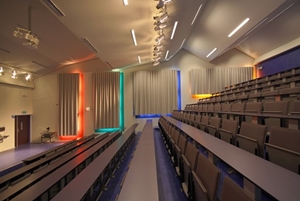De jeunesse, de flexibiliteit en de dynamiek van de studenten- en onderwijsomgeving is als een ruimzittend maatpak (dus niet als architecturaal keurslijf!) vormgegeven en even kleurrijk om de gevraagde functionaliteiten gedrapeerd als de gemeenschap zelf wenste te zijn.