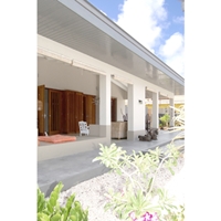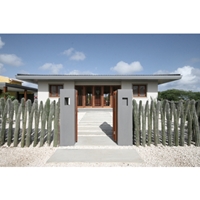 Uitgangspunt bij het ontwerp van deze vrijstaande villa was optimaal gebruik te maken van de verkoelende wind die op Bonaire altijd waait. Met de verticale lamellen kan bepaald worden hoeveel natuurlijke ventilatie de centrale leefruimte binnenkomt. Dure airco is in dit duurzame huis daardoor overbodig. Binnen en buiten lopen in elkaar over, onder andere door de grote veranda die ook voorkomt dat de zon rechtstreeks naar binnen schijnt. Er is zoveel mogelijk gebruik gemaakt van lokale materialen, zoals beton, natuursteen en drijfhout. Cactussen vormen een bijzondere, natuurlijke erfafscheiding. De bewoners beschouwen hun huis dan ook als een echt Bonairiaans huis, uiteraard voorzien van heerlijk zwembad.