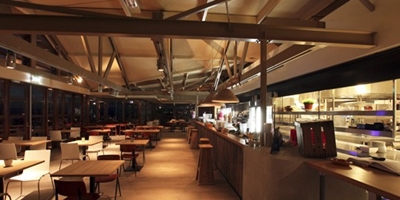 Deze extra ruimte biedt mogelijkheden om verschillende boekingen naast elkaar te kunnen hosten zonder in te boeten op de service en kwaliteit. De indeling is zo gemaakt dat het mogelijk is om 4 evenementen tegelijk te draaien: twee strandtenten die een kwartslag gedraaid zijn een hoofdbar in het midden en een vergaderruimte op de 1e verdieping. In het midden staat de kern van het paviljoen hierin zitten de ruimten voor personeel en opslag en in het hart zit de half open keuken. Het bargedeelte loopt voor deze kern langs. De kern is zo compact mogelijk gehouden dit verkort de looplijnen en zorgt voor een goede samenwerking en communicatie tussen het personeel, vooral belangrijk als er verschillende evenementen tegelijk plaatsvinden. Twee schuifwanden maken het mogelijk om de totaalruimte in korte tijd op te delen in 3 ruimten.