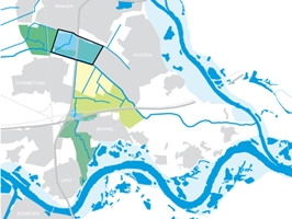 Tussen Arnhem en Nijmegen komt een 1.500 hectare groot regionaal park. Het park moet de groene kwaliteit van het rivierengebied in deze langzaam maar zeker verstedelijkende regio vastleggen. Een beeldplan geeft richting aan het landschappelijke ontwerp van vijf uiteenlopende deelgebieden.