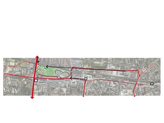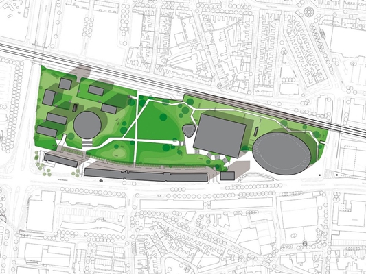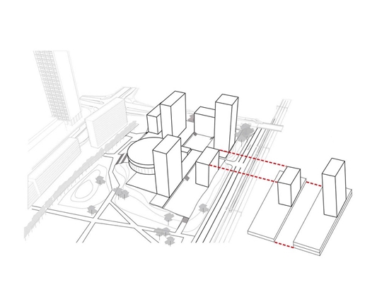 Bo.2 stelt zich het uitzonderlijke Dome-complex voor als een publiek domein, dat niet op zichzelf staat, maar deel uitmaakt van een grotere stedelijke beleving. Onze strategie is om de grote gebouwde elementen, waaronder ook de kantoren, in te bedden in één openbare groenstructuur voor alle stedelingen, het Tee Park.