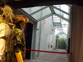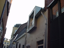 De opdracht bestond uit het uitbreiden van modezaak De Rode Winkel in samenhang met het restaureren van een middeleeuws poortgebouw en het herbouwen van drie steegwoningen. Van de steeghuisjes restte slechts de funderingen en gevelfragmenten. Het monumentale poortgebouw is onderdeel van de oorspronkelijke structuur van de Oudegracht met zijn stadkastelen. De naastliggende winkel werd gekoppeld aan De Rode Winkel door twee glazen doorgangen in de steeg te bouwen als herkenbare hedendaagse toevoegingen waardoor de twee winkels ruimtelijk en logistiek met elkaar zijn verbonden. Het poortgebouw en de steeghuisjes zijn gerestaureerd en geschikt gemaakt voor bewoning.