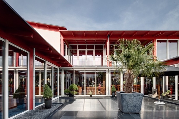 Het gebouw is gebaseerd op drie Aziatische karakteristieken, vertaald naar de huidige Europese bouw: 1) een binnenplaats, 2) een houtstructuur, 3) een prominent dak. Samen met de locatie en het gewenste programma is er een uniek ontwerp ontstaan.
