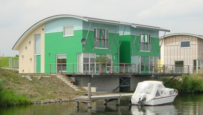 De meeste huizen drijven alleen dan wanneer eens in de 12 jaar gemiddeld het hoogwater komt. De huizen met hun betonnen drijflichamen rusten op een fundament van betonpalen en worden verticaal geleid met forse stalen palen. De aansluitingen voor gas, water, riolering en elektra zijn flexibel en blijven functioneren bij hoogwater.