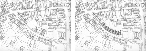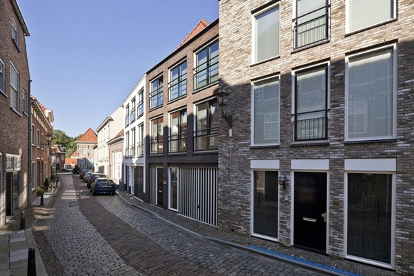 De Gasthuisstraat ligt in de historische binnenstad van de vestingstad Grave. In het mooi gebogen smalle straatje is in de jaren '70 van de 20e eeuw een grote drukkerij verschenen. De schaal van dit gebouw sloeg een gat in het fijnmazige weefsel, bovendien was de drukkerij verantwoordelijk voor een flinke bodemverontreiniging. In opdracht van Woonmaatschappij Maasland is een rij stadshuizen ontwikkeld die het straatprofiel weer afmaken en die door hun massaopbouw en geleding passen in de omgeving. Het programma is bijzonder: de woningen vallen allen in de sociale huur categorie. Ze hebben allen in elk geval één, en soms zelfs twee gebouwde parkeerplaatsen. De huizen in de rij zijn een reeks, ze zijn familie van elkaar en vertonen grote overeenkomsten: de dakvorm, de gemetselde gevels met vericale raamindelingen, de witte goten, daklijsten en raamomrandingen. Toch zijn ze ook verschillend: door de gebogen rooilijn is de breedte steeds anders, de gevelsteen is net van een andere tint, de raamopeningen wisselen per pand in hoogte. Het hoekpand is écht afwijkend. De hoek is afgeschuind om doorzicht te bieden naar het binnenterrein. Het buurpand is een voormalig klooster met een ommuurde tuin. Hierdoor is de zijgevel van veraf te zien vanaf de entree naar de Graafse binnenstad.