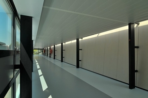 Aan de zonkant heeft de ader een horizontale belijning die refereert aan de nieuwbouw van de pediatrie met grote golvende dakoverstekken. Aan de noordkant is de gevel goeddeels gesloten en verticaal belijnd met aan de bovenrand een doorlopende glasstrook die voor een aangename lichtinval in de brug zorgt. De brug wordt zo een zeer herkenbaar element op de campus, dansend tussen de strakke gebouwen. De frisse lichtblauwgrijze kleurstelling, gelijkend de blauwe lucht, draagt bij aan de lichtheid van het ontwerp.