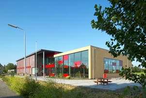 De kopgevel is uitgevoerd als een licht demontabele gevel zodat aan deze zijde later nog een aantal onderwijsruimten toegevoegd kunnen worden.
