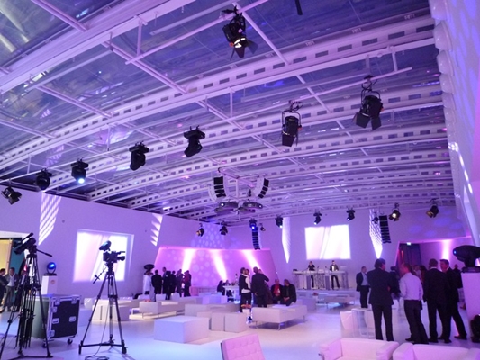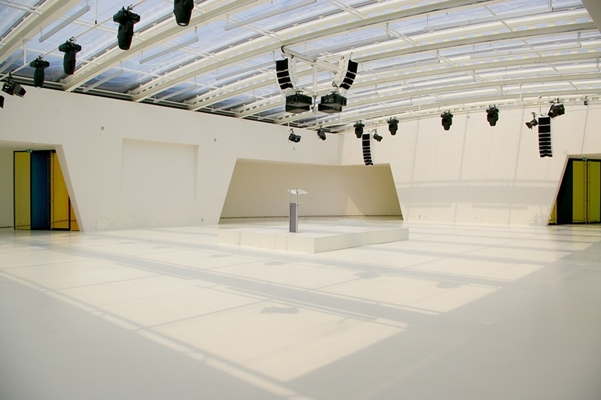 De grote zaal (voor 700 mensen) is ontworpen als een open lucht theater. Een 100% transparant ETFE dak om de beleving van vergaderen in de open lucht te vergroten.