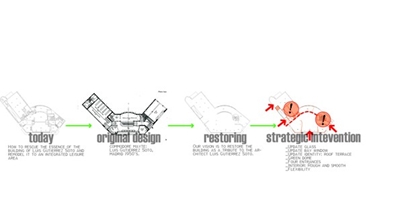De visie was om het gebouw, een voormalig restaurant, te restaureren als een eerbetoon aan de Spaanse architect Luis Gutierrez Soto (1890-1977) en te updaten met 21e eeuwse elementen om aan te sluiten op omliggende hedendaagse kosmopolitische recreatiegebouwen. Omdat het gebouw ruimte moet bieden aan een nieuwe gemengde recreatieprogramma, moest een compromis worden gemaakt tussen originele design elementen en de voorgestelde functies. Het nieuwe ontwerp omvat het herstel van de voorgevel en hoofdingang door de openen van de gevel met ramen op gevelhoogte, vervanging van de zwarte folie door koperen lamellen, het terugbrengen van de buitentrap en herplaatsing van een bar achter de ingang. In lijn met de stedelijke structurele bescherming, krijgt het gebouw een meer uitnodigende uitstraling naar de straat en creëert kansen voor commercieel gebruik van het voetgangersgebied als terras.