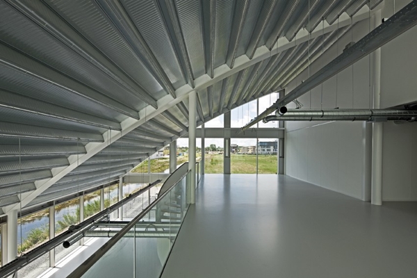 Andere voorbeelden van geïntegreerde oplossingen zijn de hemelwaterafvoer weggewerkt achter de gesloten gevelstroken en een alternatief brandveiligheidsconcept waarin het hele pand geldt als één groot brandcompartiment. De staalconstructie van het atriumdak is tevens geleider van de zonwering aldaar.