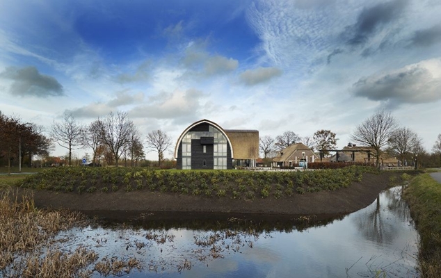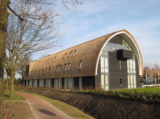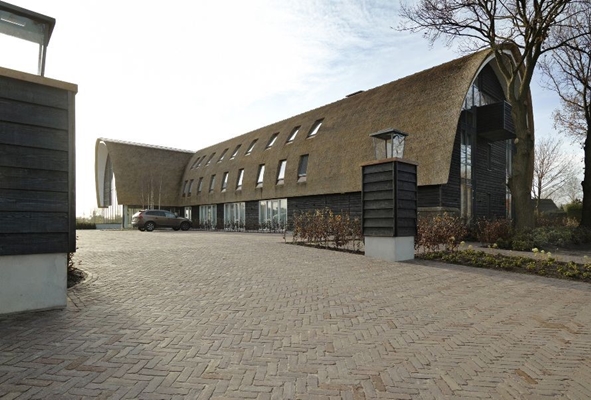 De gevels van gepotdekseld zwart hout refereren aan de traditionele tabakschuren waarvan er in de omgeving van Nijkerk een aantal bewaard is gebleven. Het monumentale rieten dakvlak wordt onderbroken door de dakramen en door twee statige koperen dakkapellen. De puien op de kopse kanten van het hotel hebben een bijzondere uitstraling door de schijnbaar willekeurige plaatsing van glas, houten delen en de balkons van de bruidsuites.