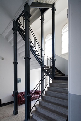 PROGRAMMA Na het vertrek van de brandweer in 1973 naar een nieuwe locatie werd de kazerne gebruikt als werk-, woon- en atelier-ruimte. Uitgangspunt van de restauratie was dat de woningen en ateliers op de verdiepingen gehandhaafd zouden blijven t.b.v. de zittende gebruikers. De begane grond en de smederij dienden getransformeerd te worden tot kantoor– en werk-ruimte voor bedrijven in de creatieve sector. Voor een sluitende exploitatie was realisatie van extra vloeroppervlak op de begane grond noodzakelijk.