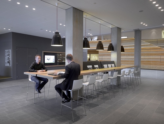 Het atrium wordt geflankeerd door twee parallel aan elkaar gepositioneerde kantoorvleugels. De kantoorvloeren, onderling met bruggen verbonden, staan in open verbinding met elkaar en het atrium. De hele organisatie van BP werkt in één open ruimte, volgens de principes van Het Nieuwe Werken (HNW). Meetings vinden plaats in vergaderkamers, die als sky-boxen in het atrium zijn geschoven. Hierdoor ontstaat een interactieve werkomgeving die communicatie, samenwerking en creativiteit van de medewerkers bevordert. De zichtbare en voelbare kwaliteiten van het gebouw sluiten naadloos aan bij de kernwaarden van BP Rotterdam; het nastreven van een aantrekkelijke werkplek waarin jongere en oudere professionals elkaar kunnen ontmoeten en stimuleren. Het uiteindelijke resultaat is een werkomgeving waarbij landschap, gebouw en interieur, vloeiend in elkaar overgaan.