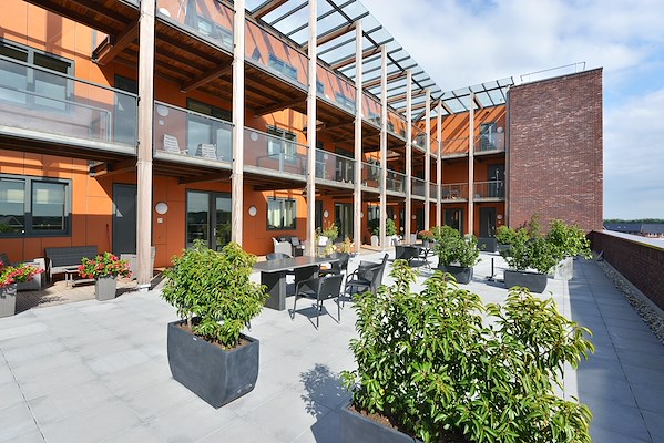 De startersappartementen zijn uitgewerkt als smalle eengezinswoningen in twee lagen, zodat de relatie met de binnentuin optimaal is. De parkeerplaatsen zijn goeddeels aan het zicht onttrokken door deze te overbouwen met vier appartementen. Bovenop de startersappartementen bevindt zich een 13-tal woningen voor jongeren met een autistische stoornis. De seniorenwoningen zijn in drie bouwlagen boven het gezondheidscentrum gelegen, rondom een daktuin op het gezondheidscentrum.