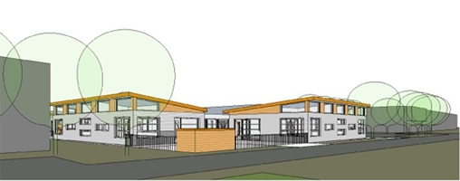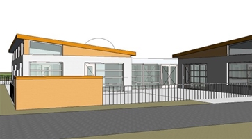 Het is de bedoeling dat de kinderen hier in aanraking komen met sport. De jongste groepen hebben een beschermd buiten speelgebied maar de oudere zullen gebruik maken van de sportvelden. Aan de bestaande kantine worden drie paviljoens toegevoegd met per paviljoen telkens twee groepen die een beperkte keukenvoorziening en sanitair delen.